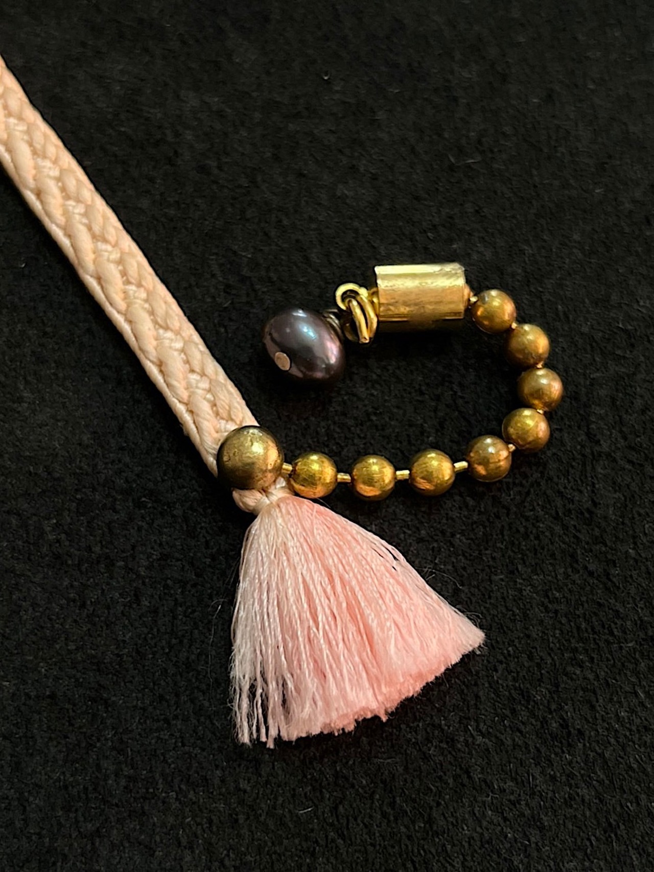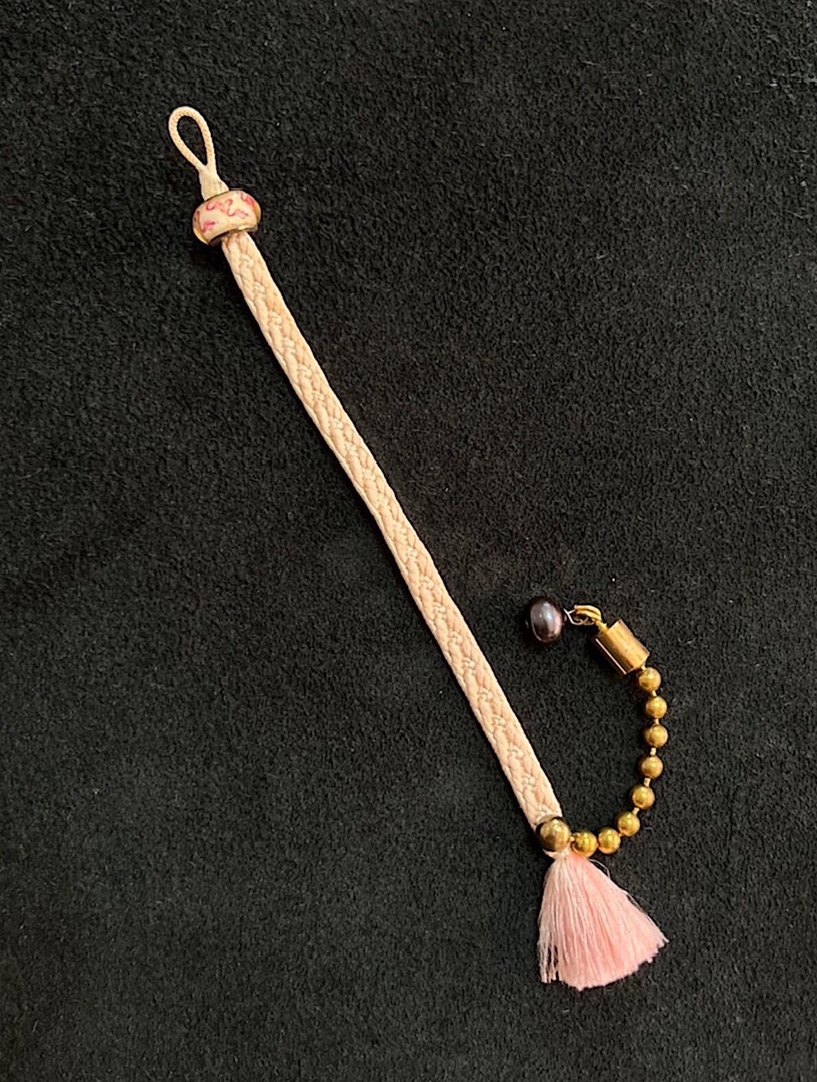 このブレスレットは独特の日本文化の羽織紐とアメリカンアンティークパーツを組み合わせ、ひとつひとつ手作りした一点もので他にはない魅力を放ち、あなたを彩ってくれるでしょう。
